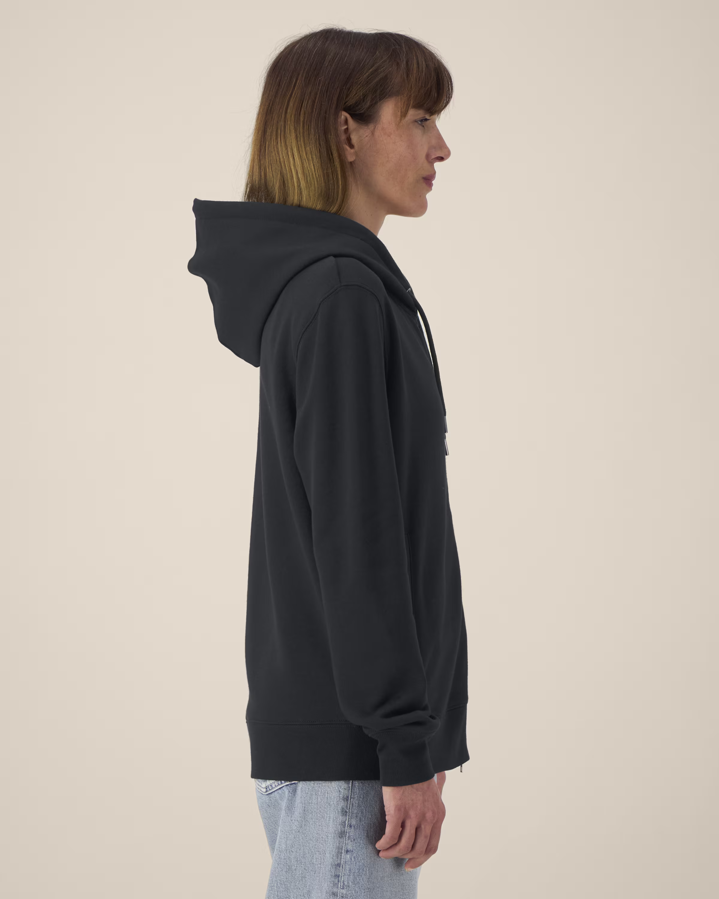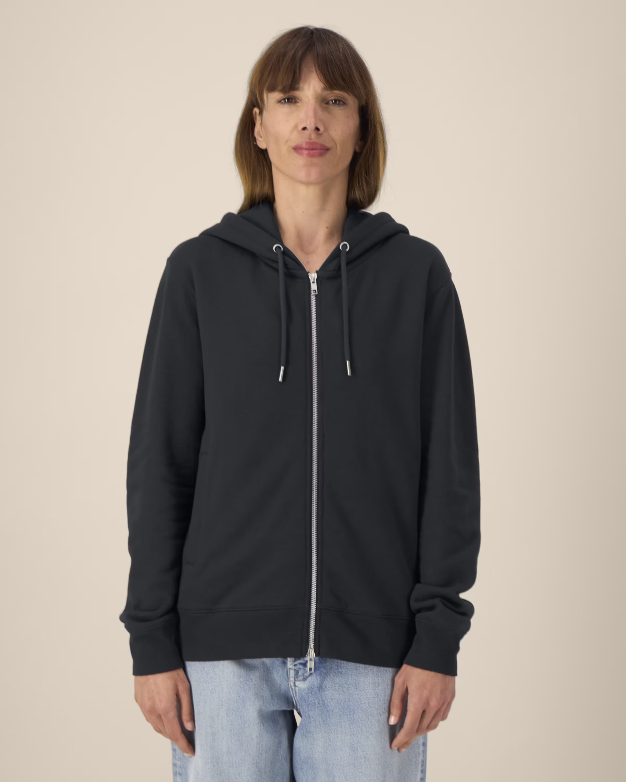 - Mūsdienīga jaka ar garo rāvējslēdzi un divslāņu kapuci;