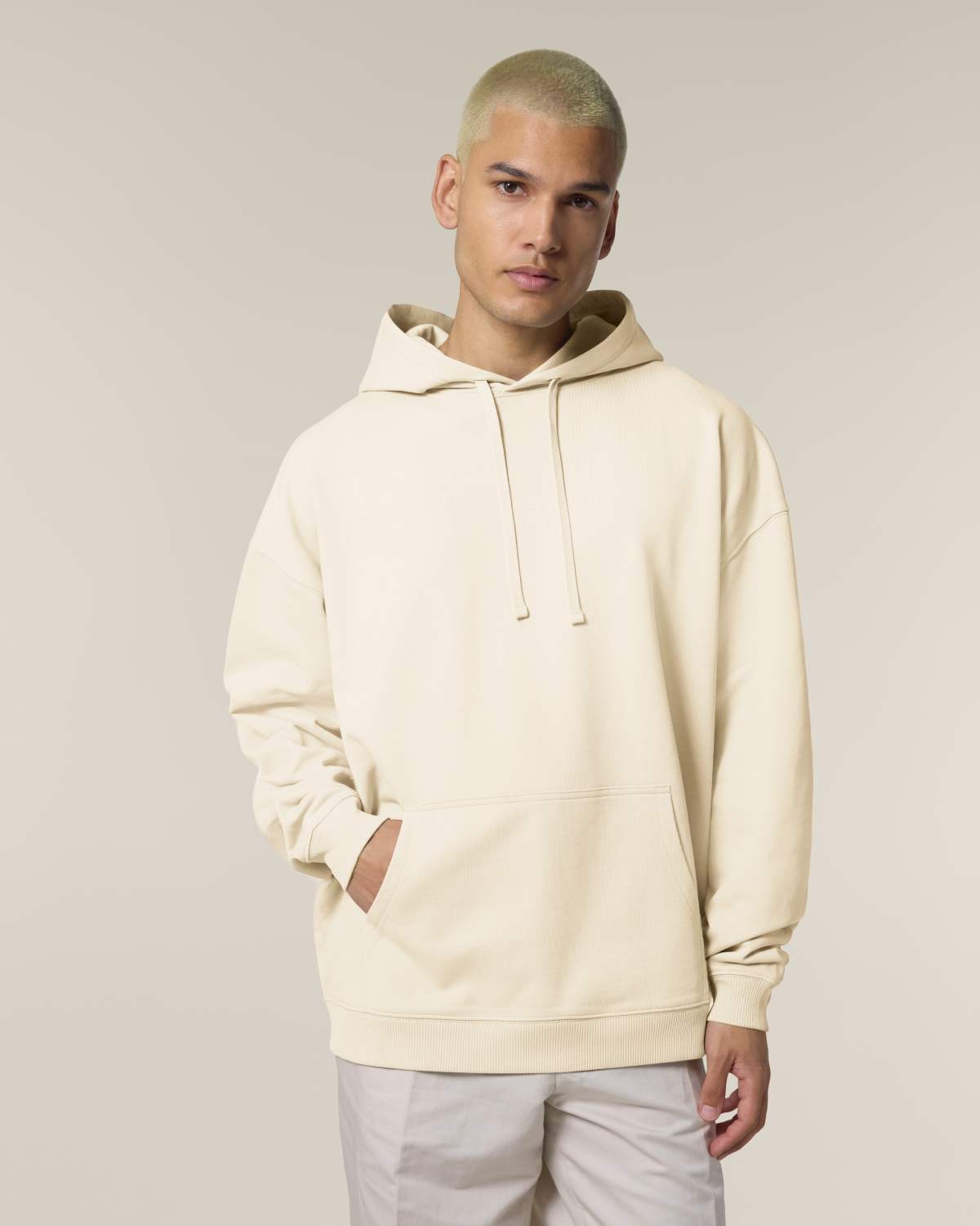 - Mūsdienīgs džemperis ar kapuci un “ķengura” kabatu;