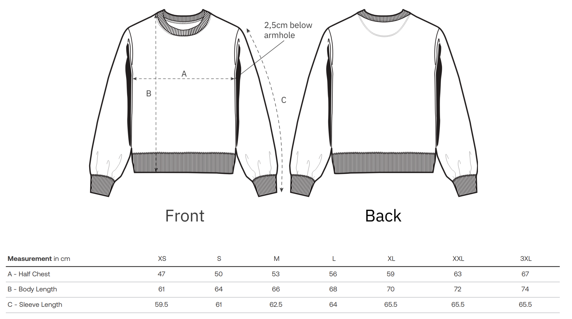 • 1×1 ribas kakla izgriezumā, piedurkņu aprocēs un apakšmalā;